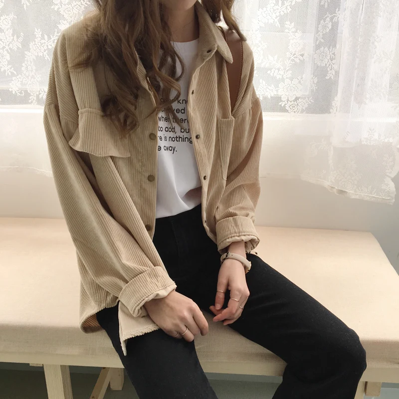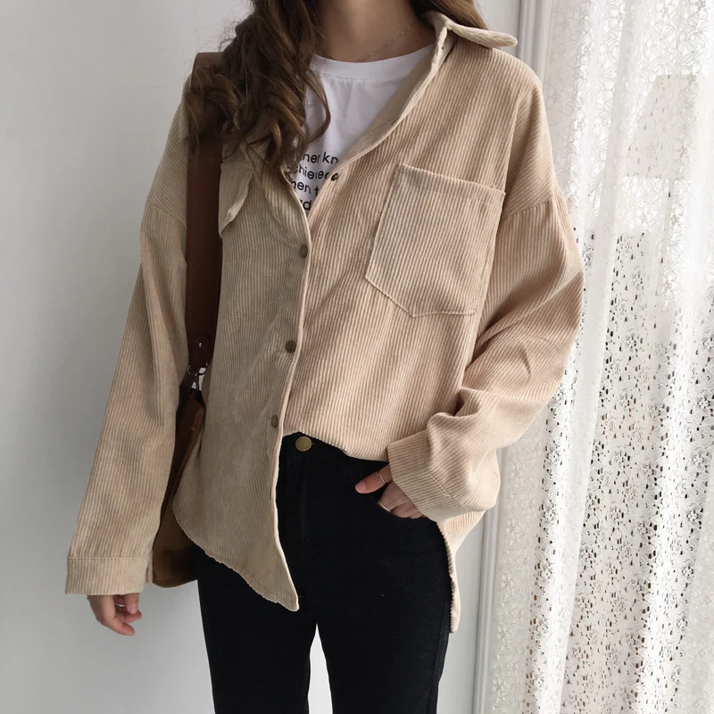 Promo 2 colors 2018 spring and autumn Loose Shirts Korean Solid Blouse Long Sleeve Corduroy blouses Women
