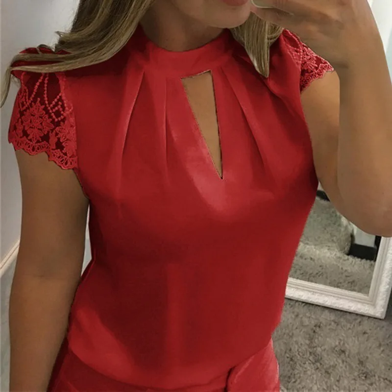 Best MoneRffi Blouse 5XL Plus Size Blouse Women Sexy Chiffon White Shirt Casual Hollow Short Sleeve Spli