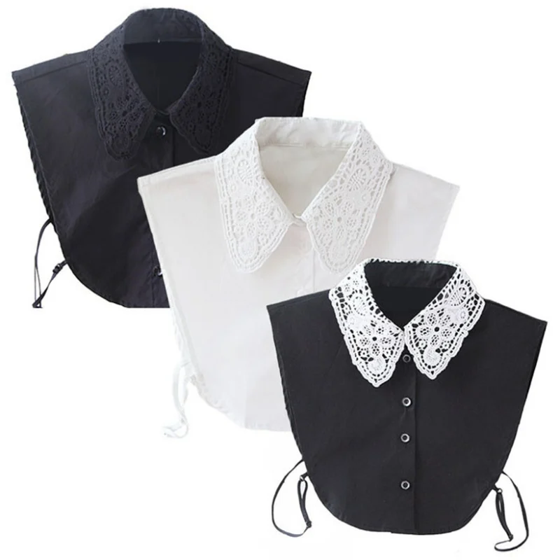 Buy Vintage Fake Lace Shirt Blouse Peter Pan Detachable Collar Tie Women's Blouses 3 Colors