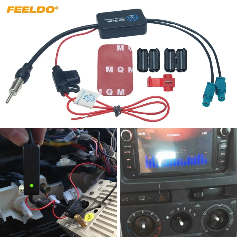 Buy FEELDO 1Pc 12V Car Radio FM/AM Aerial Antenna Signal Booster Amplifier For Audi Volkswagen FAKRA II