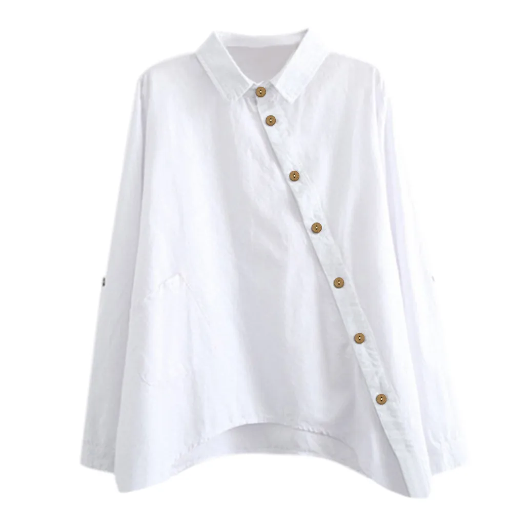 Promo JAYCOSIN Shirt Women Casual Shirts Ladies Top Irregular Button Design Casual Long Sleeved Solid Col
