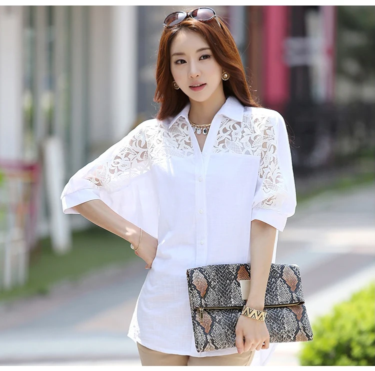 Promo womens tops and blouses women blouses shirt plus size women tops Middle long white cotton linen lac