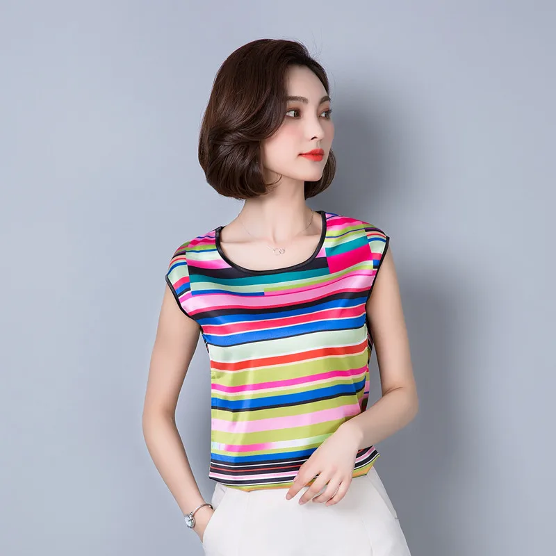 New 2018 fashion sleeveless chiffon women's clothing geometric striped plus size 5XL women blouse shirt