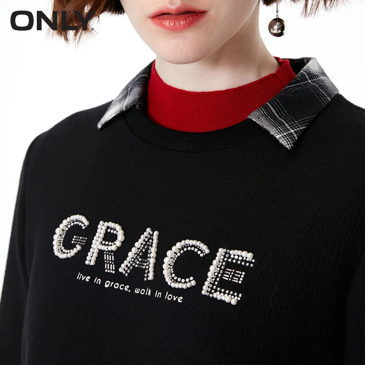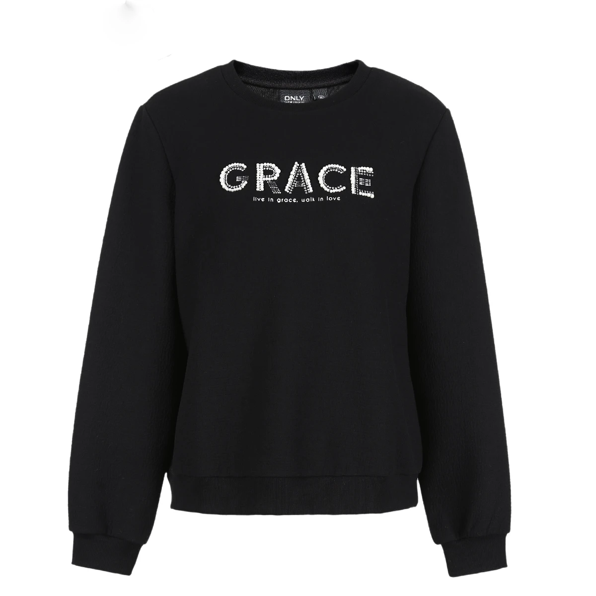 Best Women's Beaded Letter Print Round Neckline Pullover Hoodies Sweatshirt 11839S607