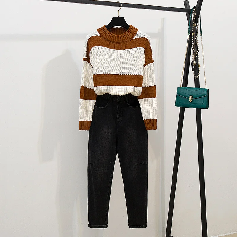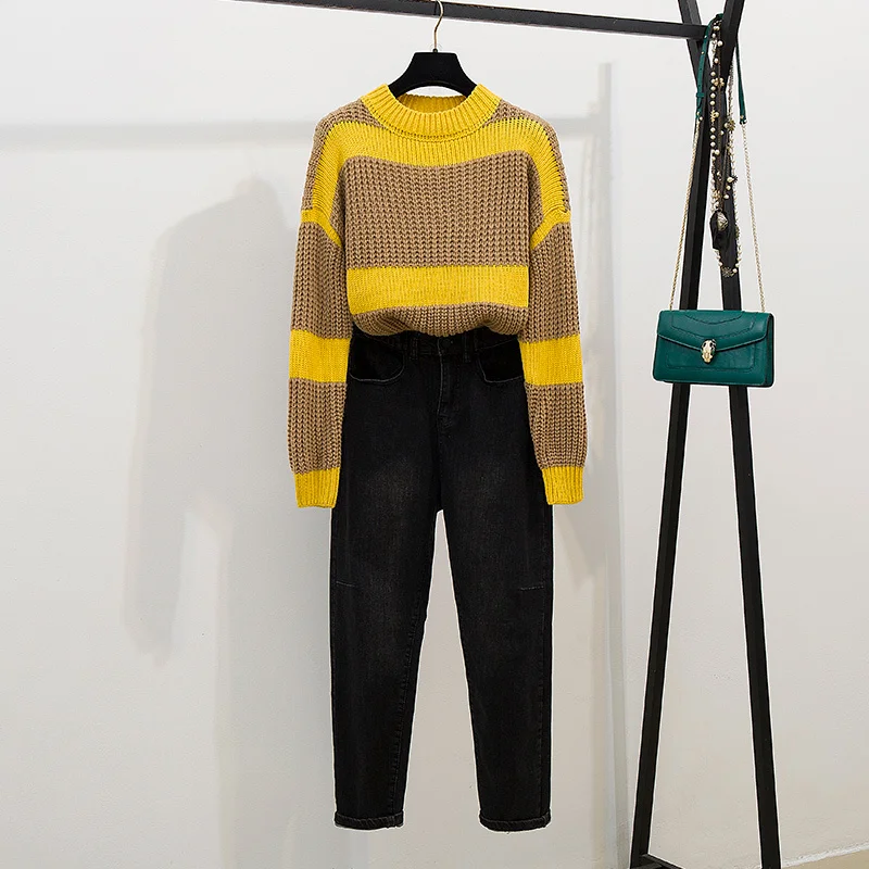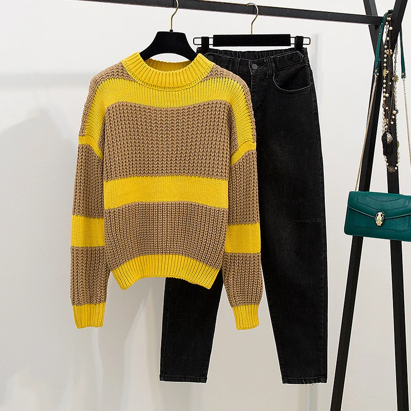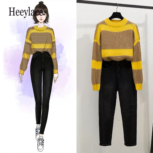 If you search this product, i propose you to take this excelent and best products. I hope 2019 Autumn New Fashion Women knitted striped Pullover Sweater + Jeans pant set women clothes Suit suitable for your needs.