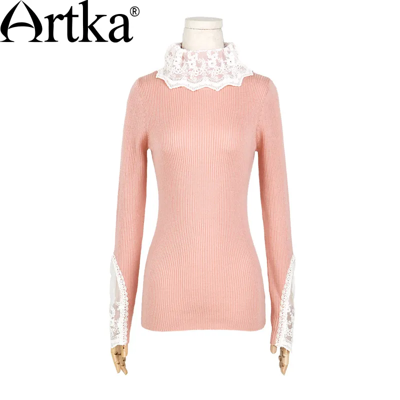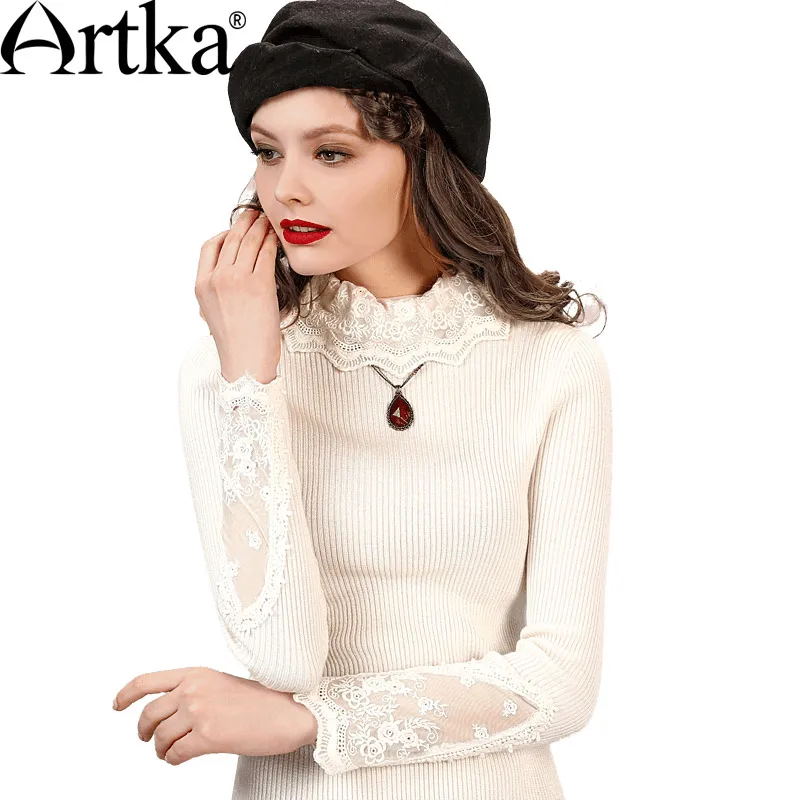Best ARTKA Women's Winter Sexy New Pullover Wool Sweater Lace Tutleneck Collar Casual Warm Knitwear in 3
