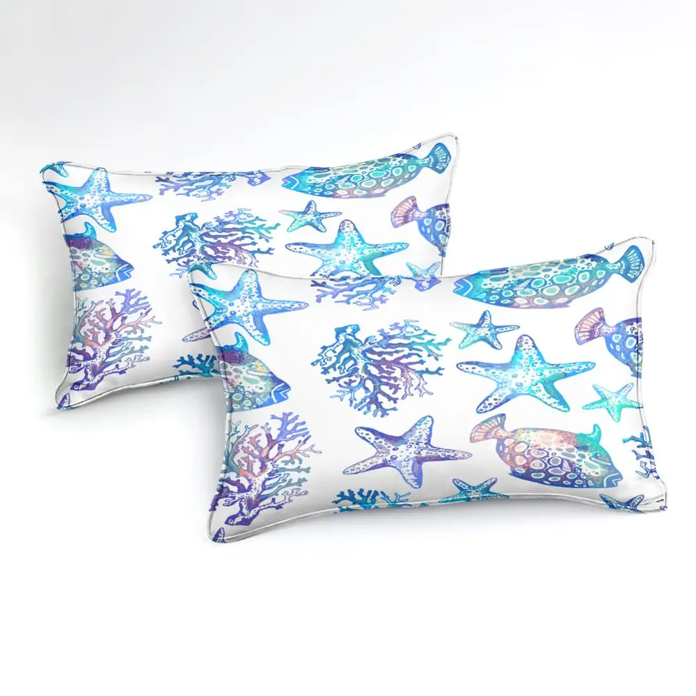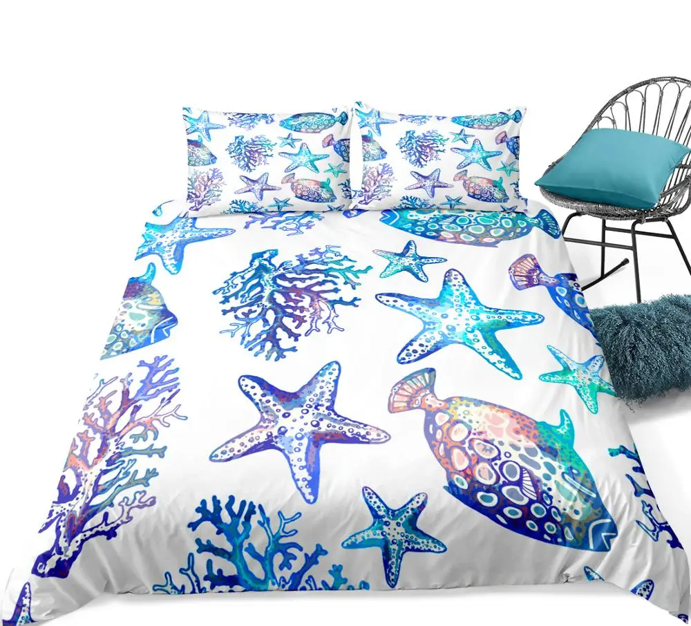 New Coral starfish Bedding Set Duvet Cover Set 3-Piece Bedspreads Ocean Animals Kids Bed Cover Set Home