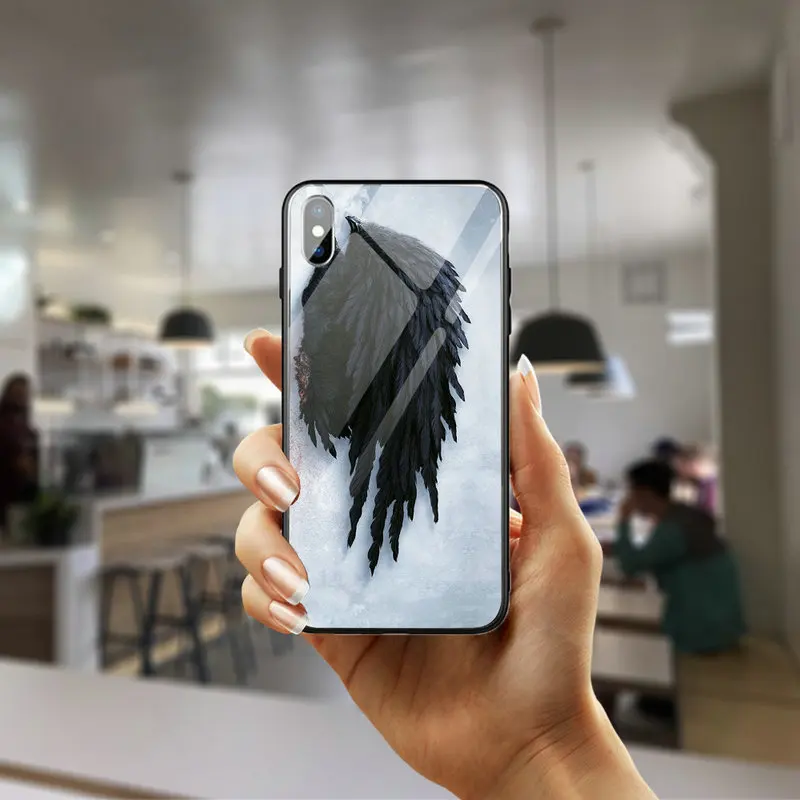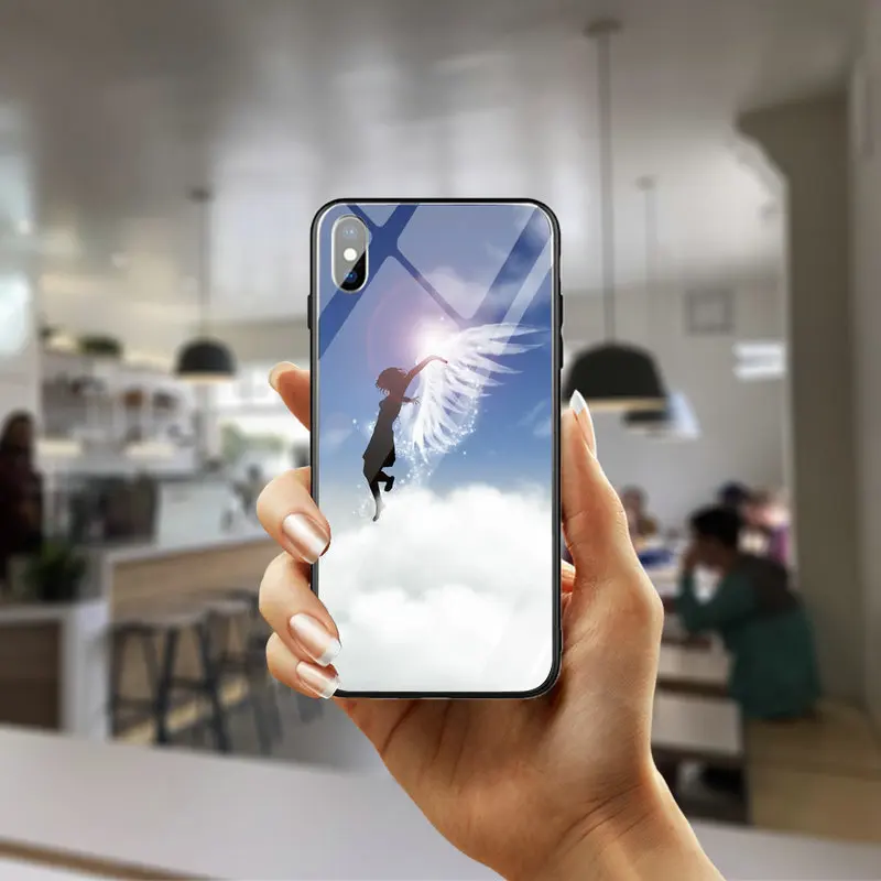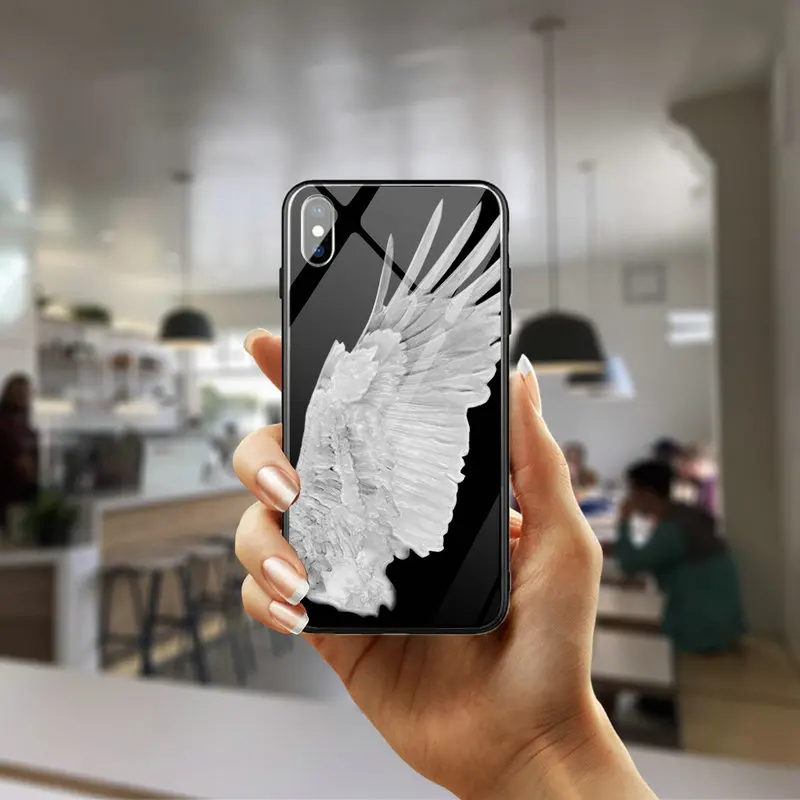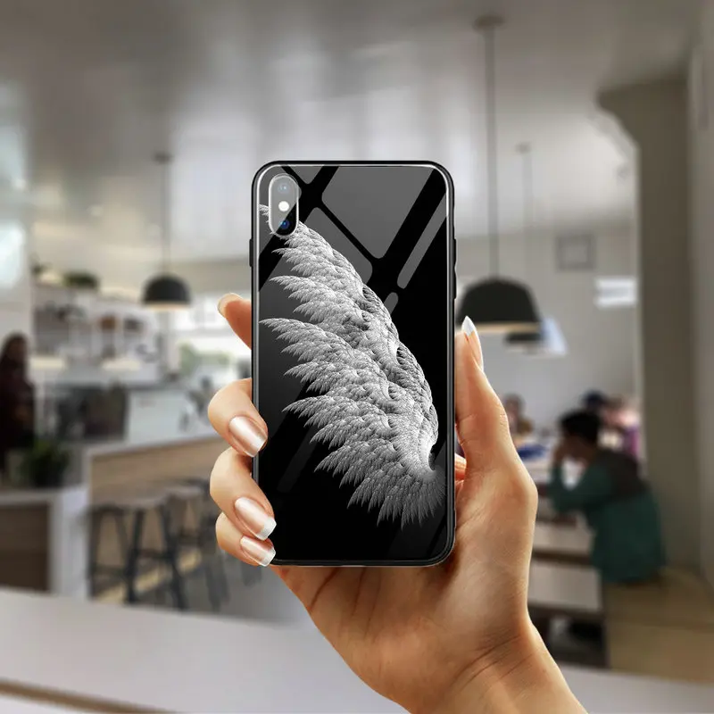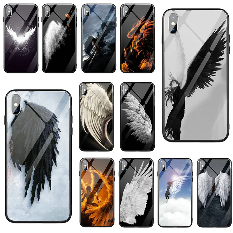 Promo Fallen Angel Wings Fly Tempered Glass Phone Cases Cover for iPhone 5 5S SE X XR XS 11 Pro Max 10 7