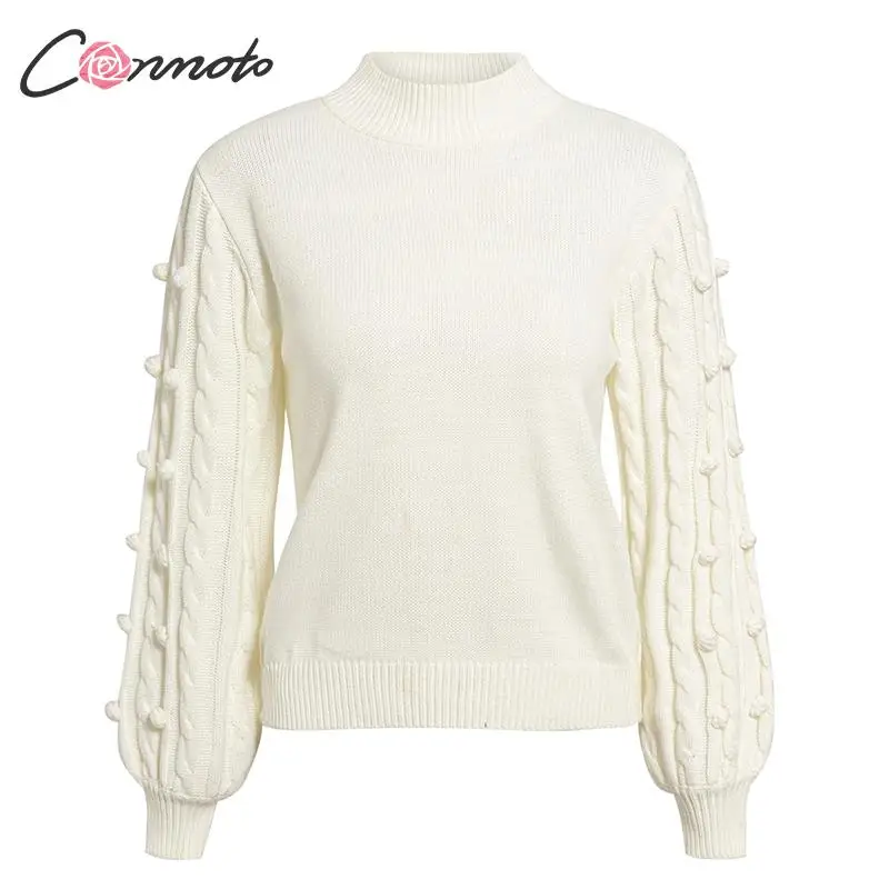 New Conmoto Casual Knitted Sweater Women Solid White Autumn Winter 2019 Sweater Jumpers Vintage Lantern