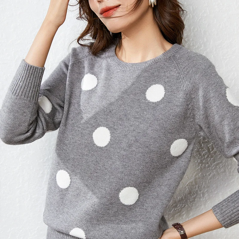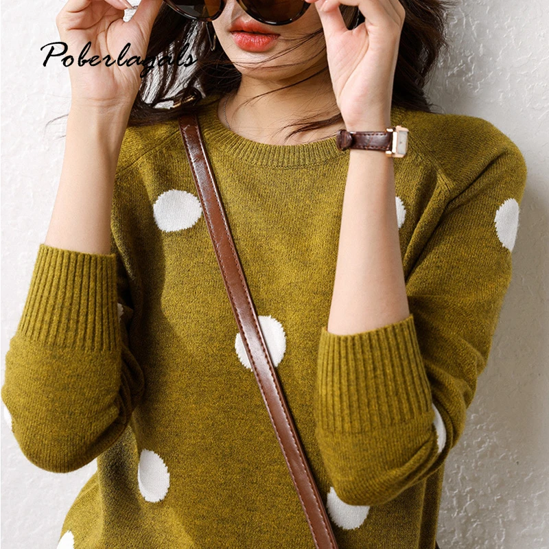 New Fashion Polka dot Pullover Winter Sweater Womens autumn 2019 korean knitted Pullovers Skinny Elasti