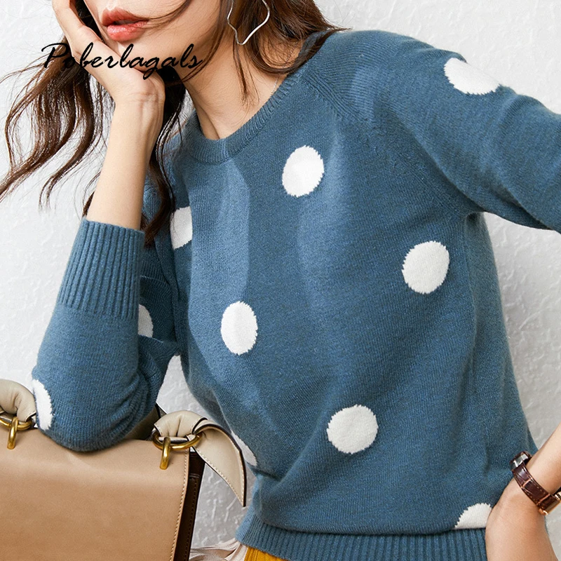 Buy Fashion Polka dot Pullover Winter Sweater Womens autumn 2019 korean knitted Pullovers Skinny Elasti