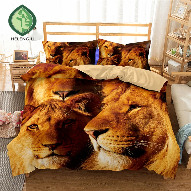 New HELENGILI 3D Bedding set Lion Print Duvet cover set lifelike bedclothes with pillowcase bed set hom