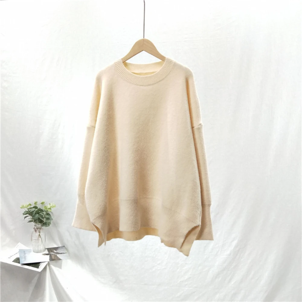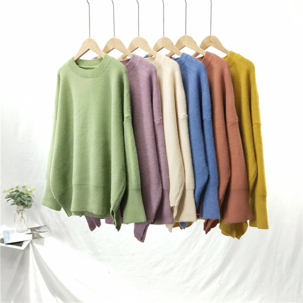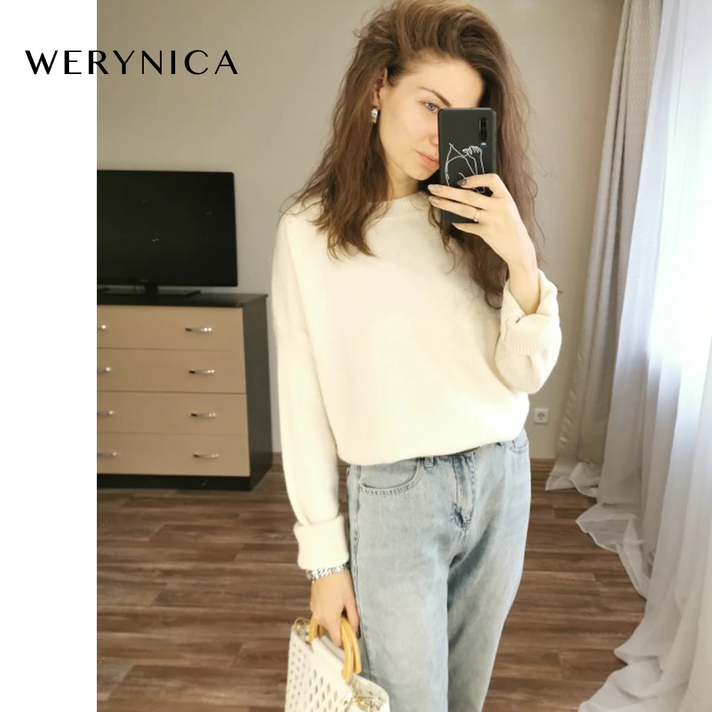 Promo Werynica Casual Loose Autumn Winter Korean O-neck Sweater Women Oversize Solid Knitted Sweaters War