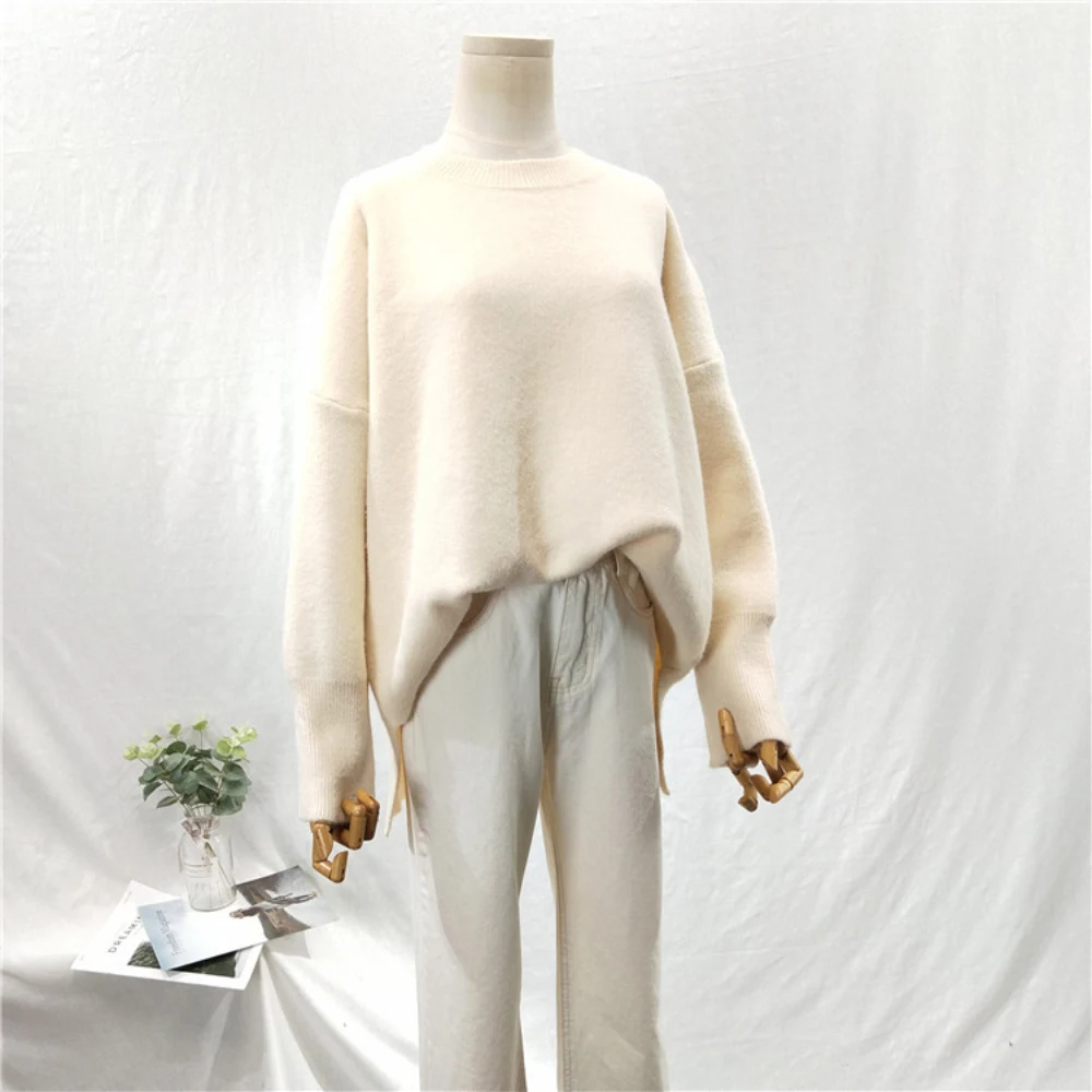 New Werynica Casual Loose Autumn Winter Korean O-neck Sweater Women Oversize Solid Knitted Sweaters War