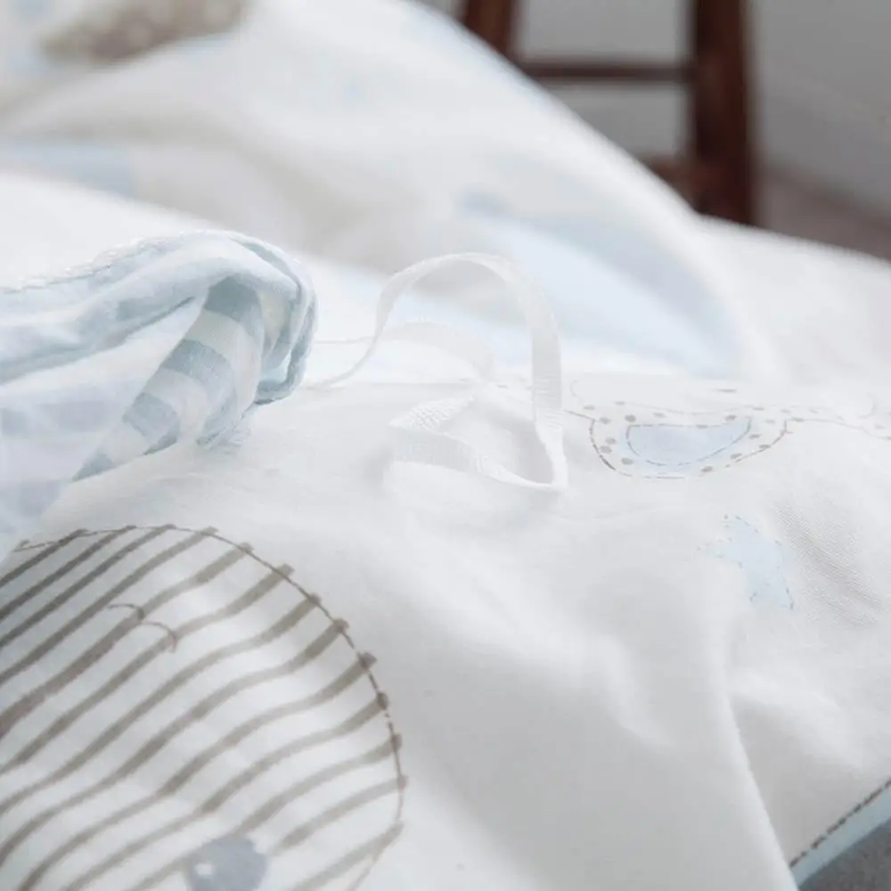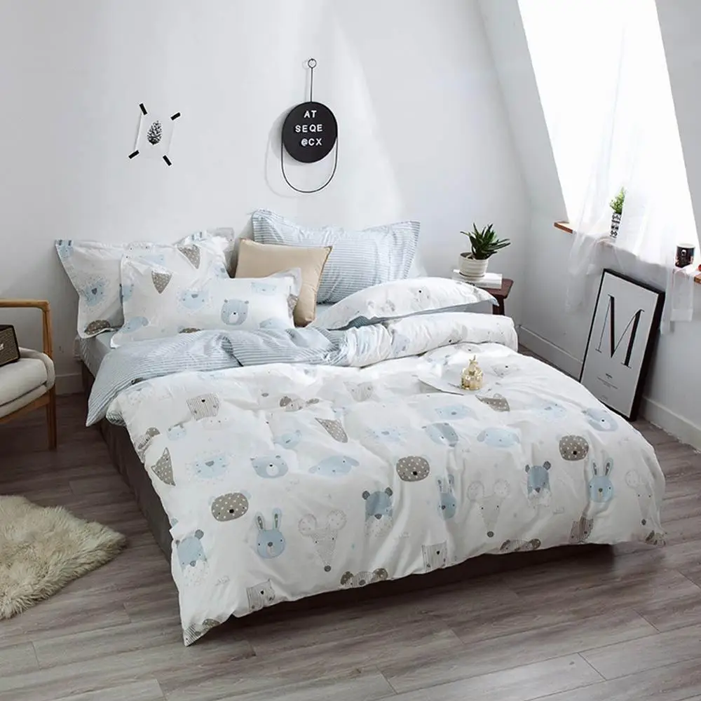Promo 2019 Light Blue Grey Animals Cartoon Bed Cover Soft Cotton Bedlinens Twin Queen King Duvet Cover Se
